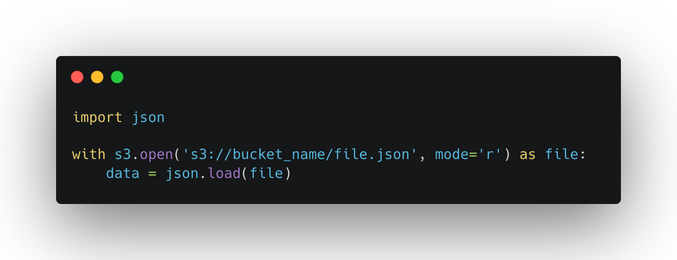 s3.ls(bucket_name) 4.2 Read a JSON file